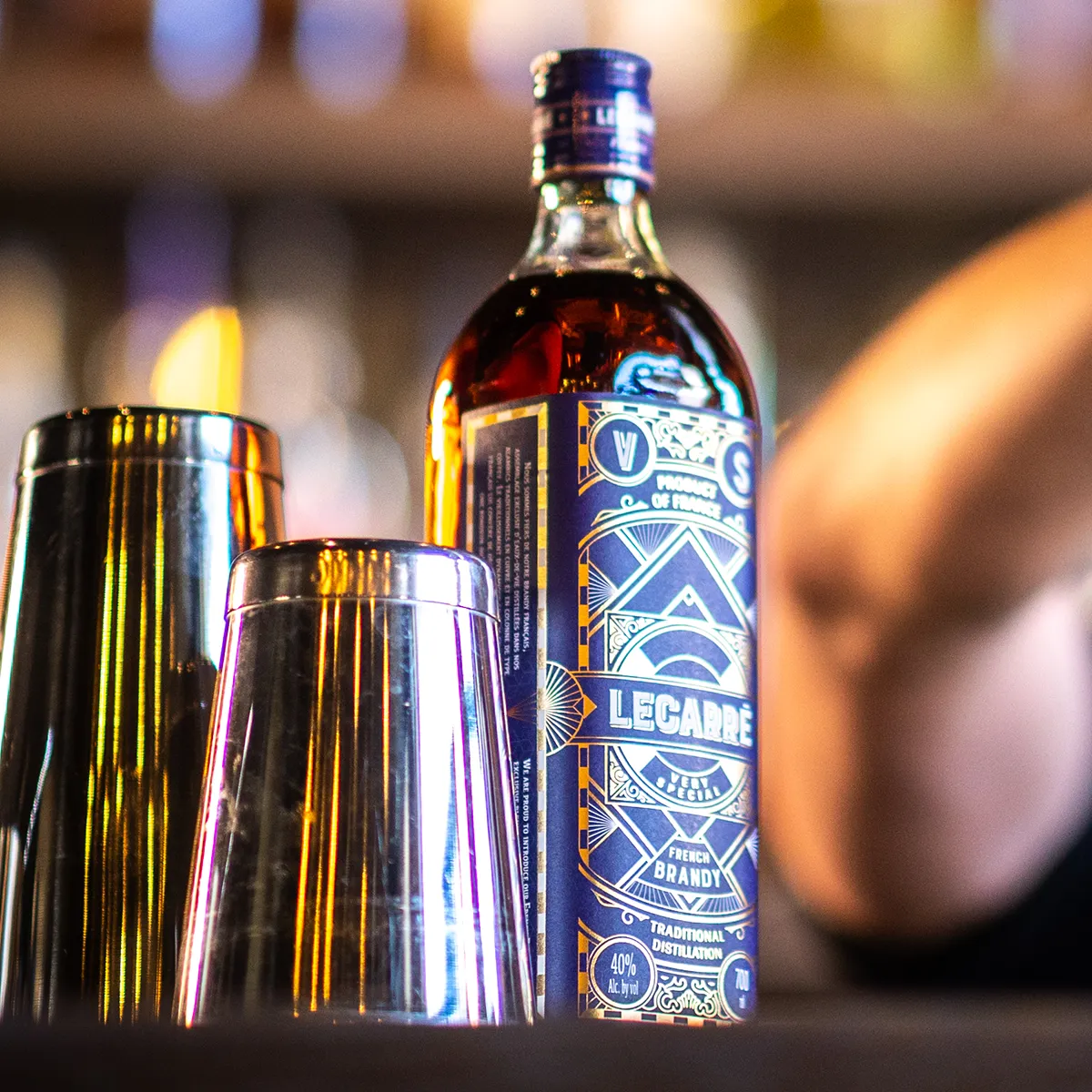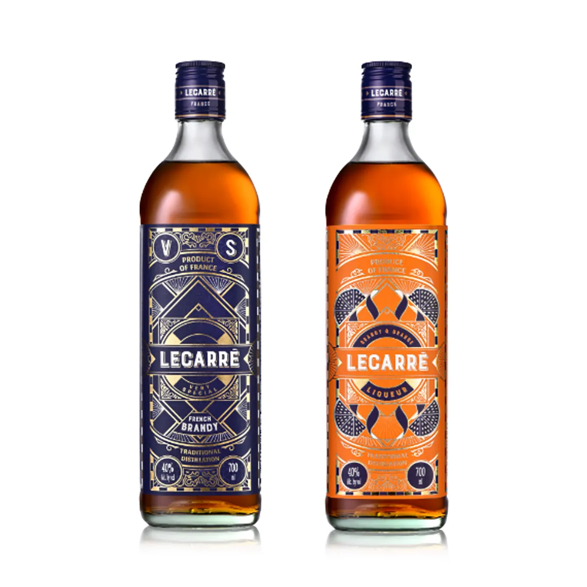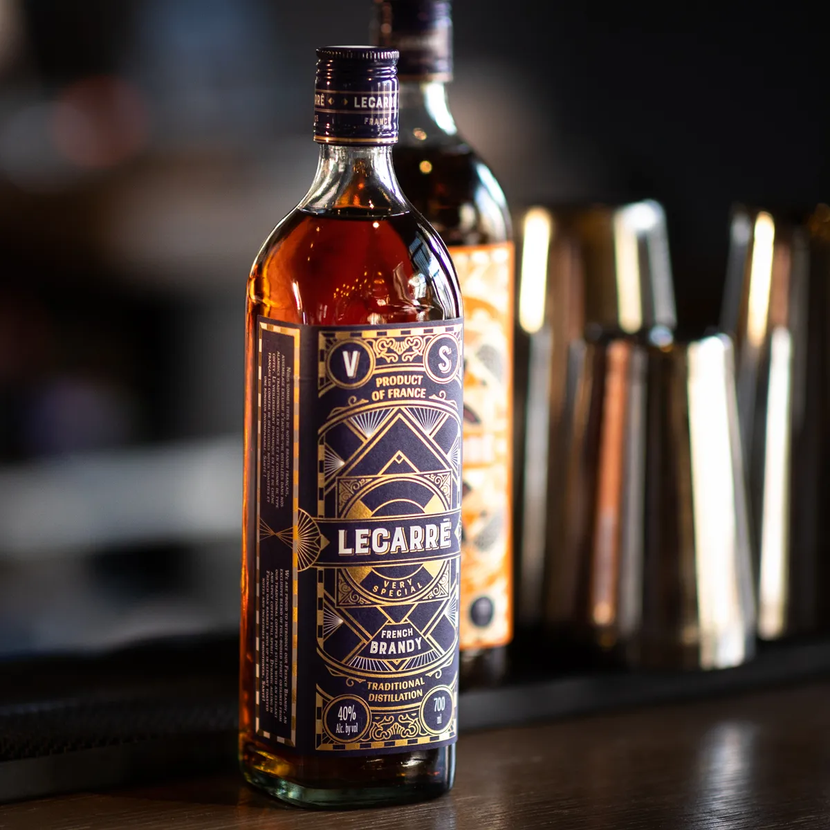 Proposer un nouveau brandy pour le marché américain était l’idée principale. Comment ? Grâce à nom choisi par notre client : Lecarré. Ce nom n’est pas une simple vue géométrique mais une référence historique au quartier Le Vieux Carré de la Nouvelle Orléans, lieu de naissance de la mixologie dans les années 1930. Le décor est posé : à nous de jouer pour créer un packaging à la hauteur !
