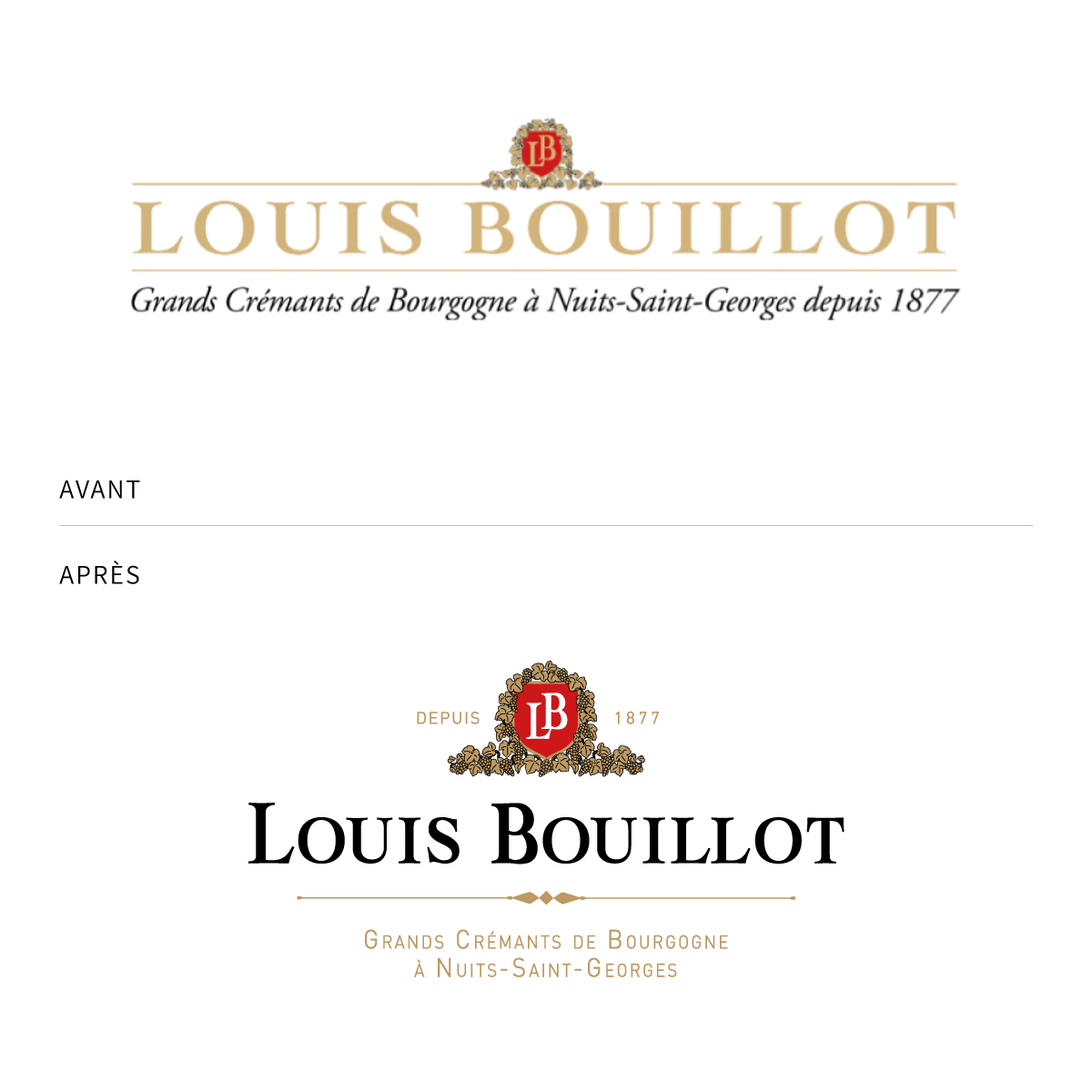 Nous avons remporté un appel d’offre pour réaliser le lifting du logo Louis Bouillot, un des leaders des Crémants de Bourgogne haut de gamme.